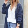 Cardigan long en tricot épais avec poche pour femme Grandes tailles Manches longues Ouvert sur le devant Léger et décontracté, 01# Gris., S : …