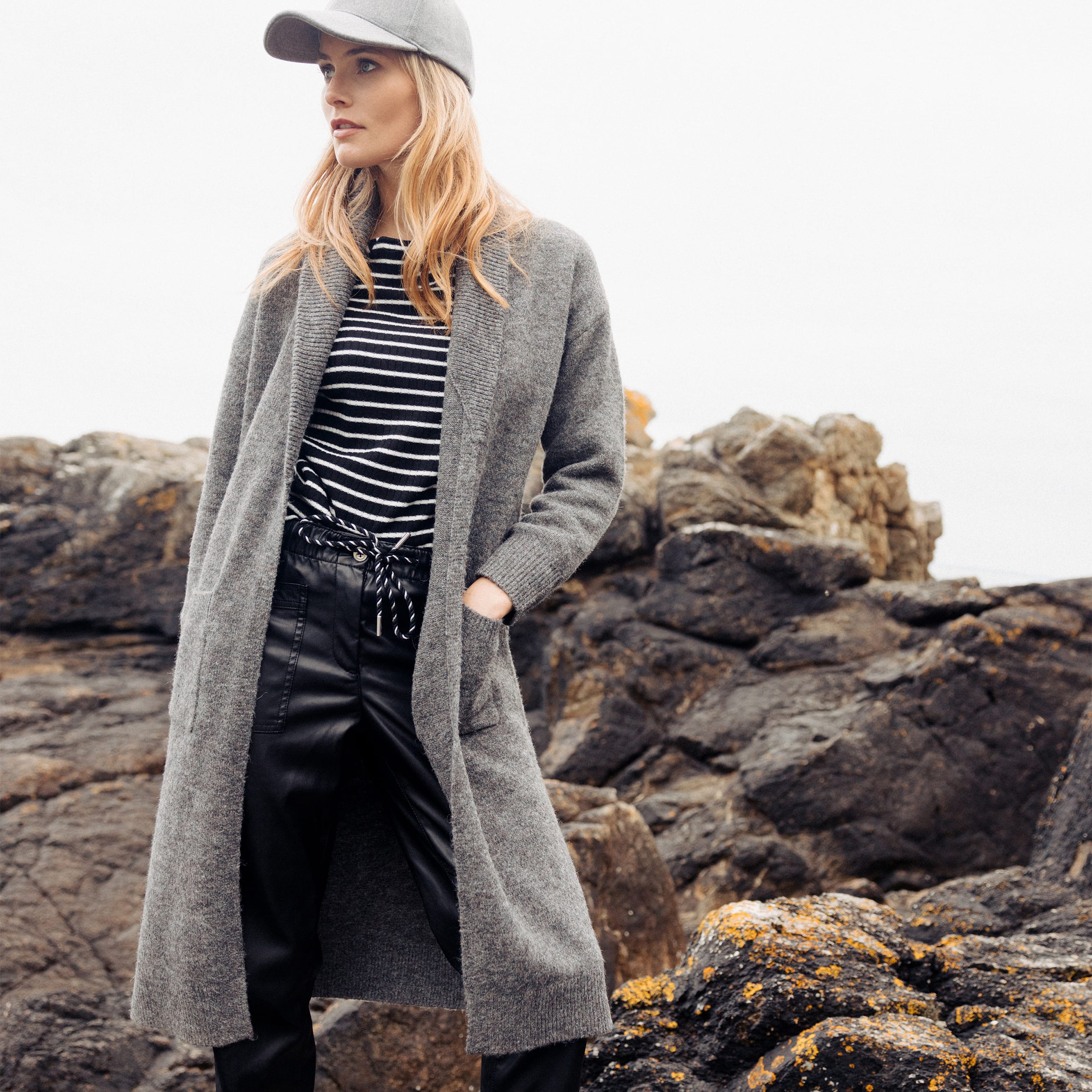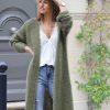 Gilet long manches longues gris foncé femme