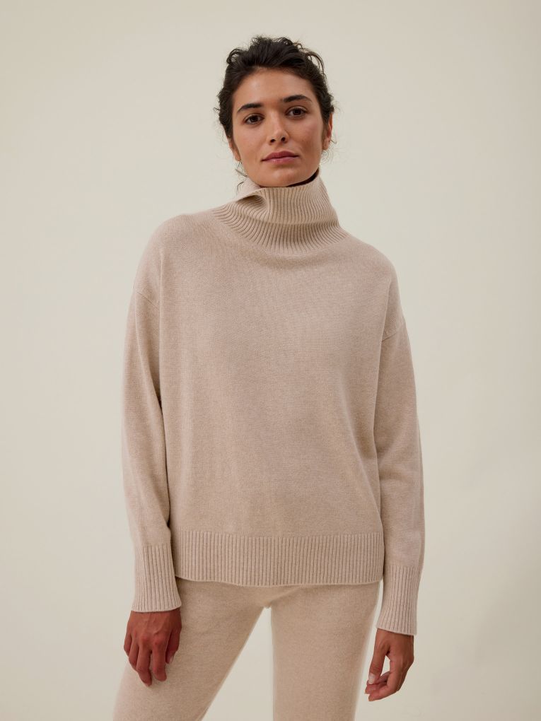 Karam Pull col roulé en cachemire 4 fils beige clair pour femme