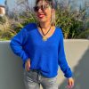 Pull manches longues col en V bleu electrique femme