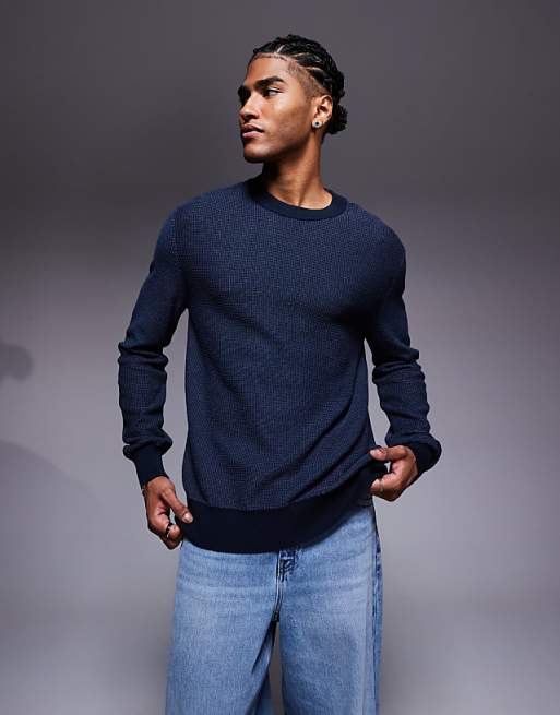 Boss Orange Klapok Pull ras de cou coupe classique en maille texturée Bleu marine