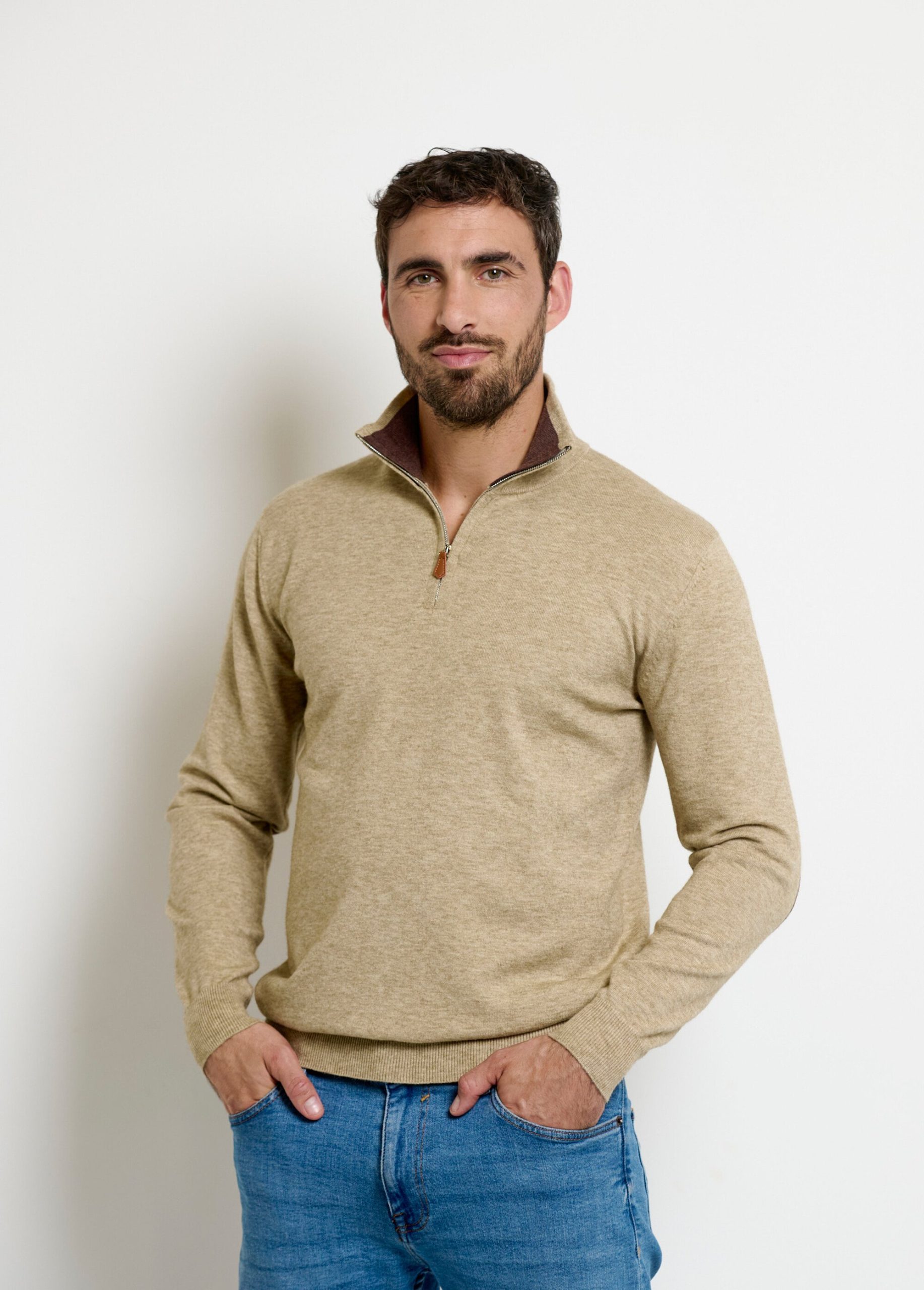 Pull col camionneur détails contrastants Beige | Afibel