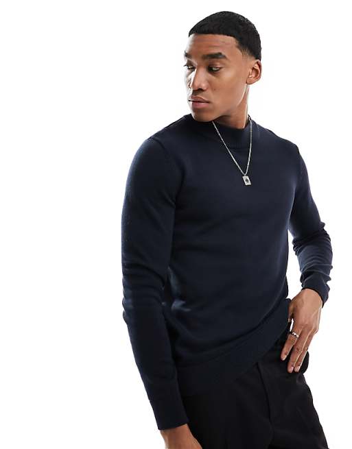 Selected Homme Pull col montant en maille Bleu marine | ASOS