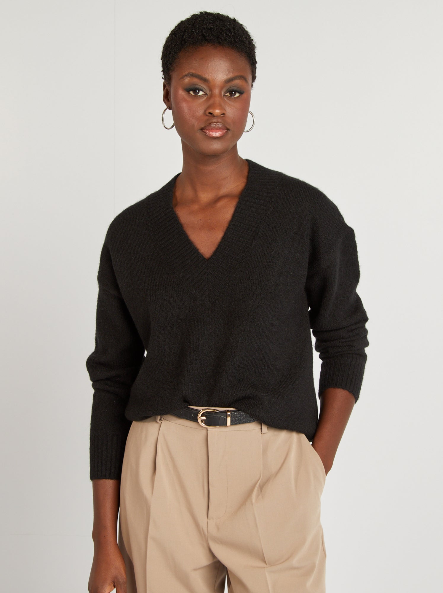 Pull en maille à col V Noir Femme 4.50€ Kiabi