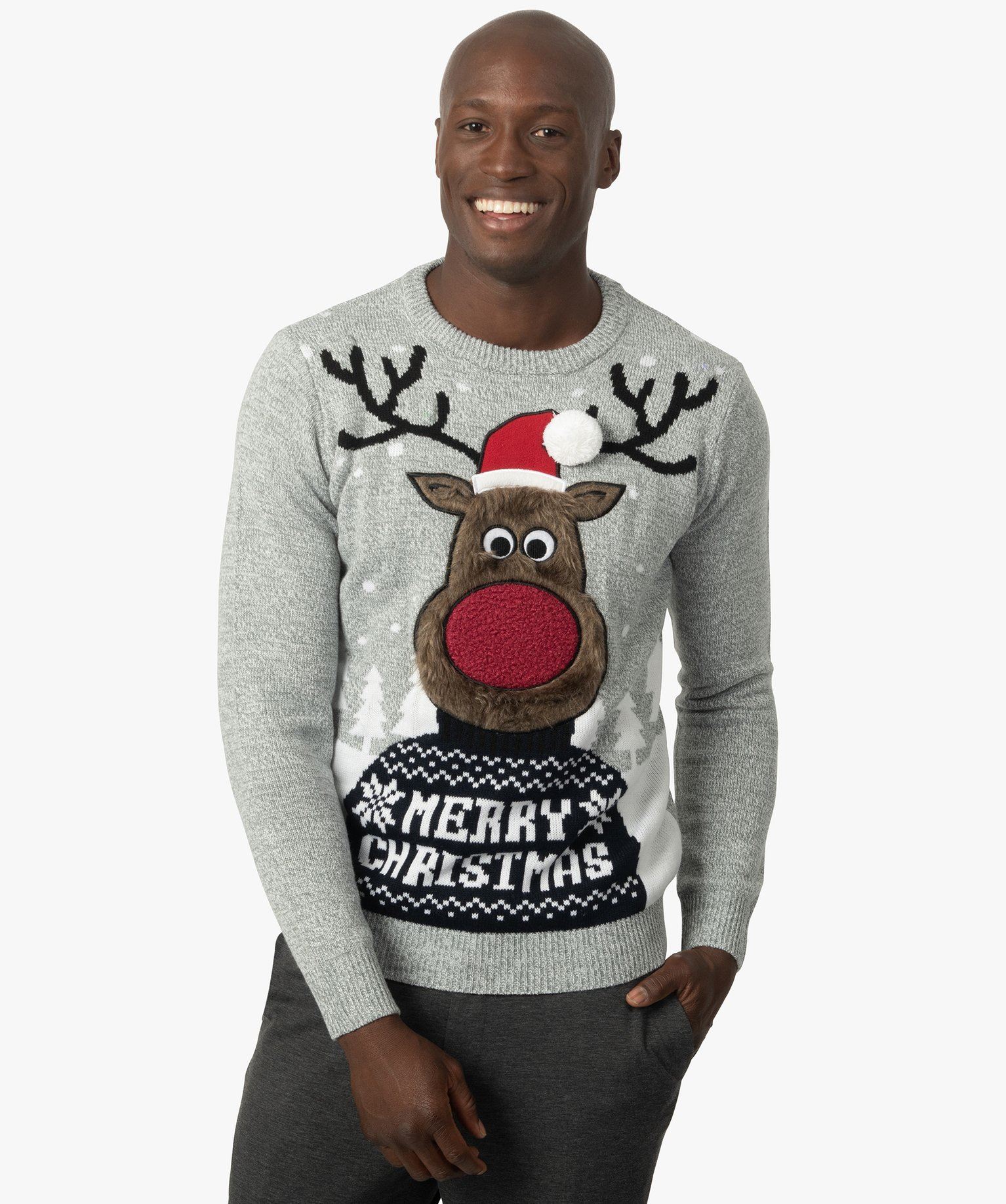 pull de noel homme avec motif renne et leds gris pulls homme | GÉMO