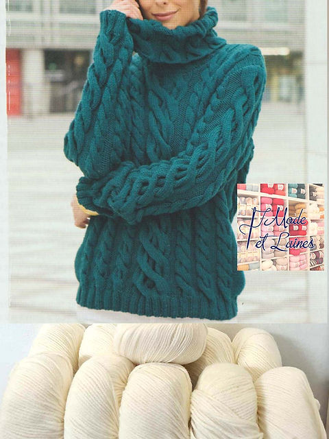 Kit Pull femme irlandais manches longues col roulé Réf: PIF005 | mode et laines