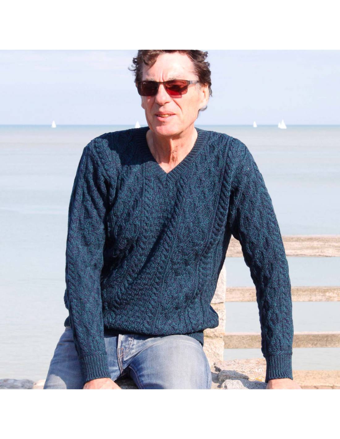 Pull nordique Homme ras cou nid d’abeille gris ou marine