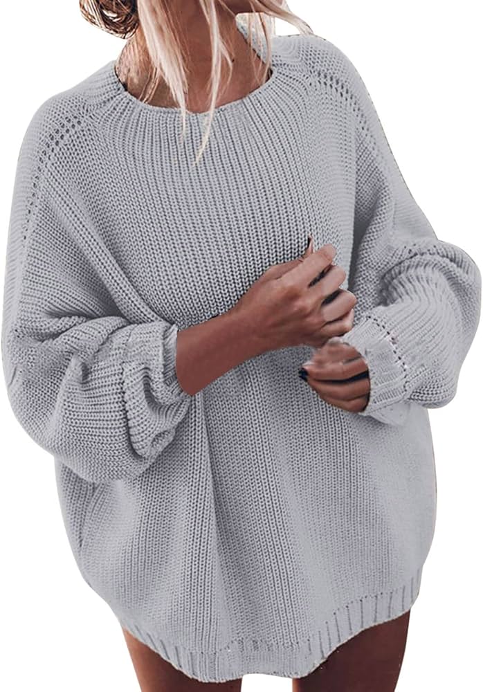 Pull Oversize Femme Tricot, Pulls Femme Long Col Rond Ample Couleur Unie Rétro Sweater Décontractés Chaud Tricoté Chandails Lâche Classique Doux …