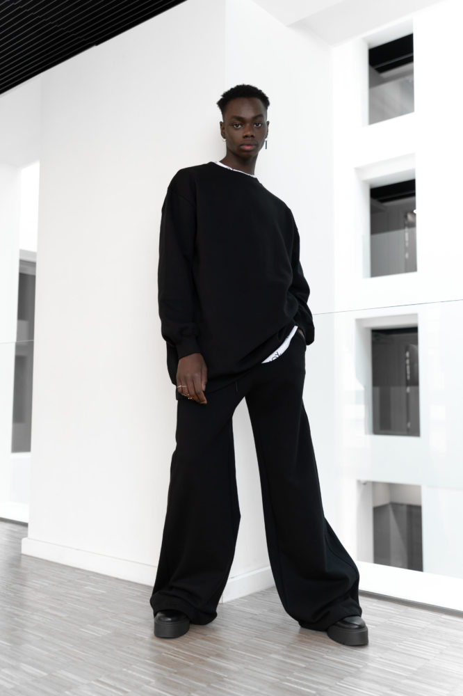 Pull Oversize noir 100% coton bio broderie 3D | Ziliox