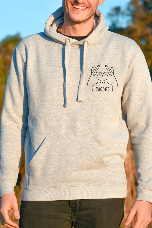 Sweat personnalisé couple | Mains Coeur et date