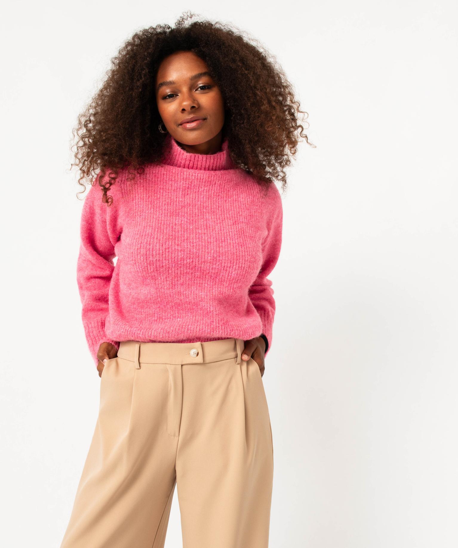 Pull col montant en grosse maille femme Gémo x Melissaallbb rose | GEMO