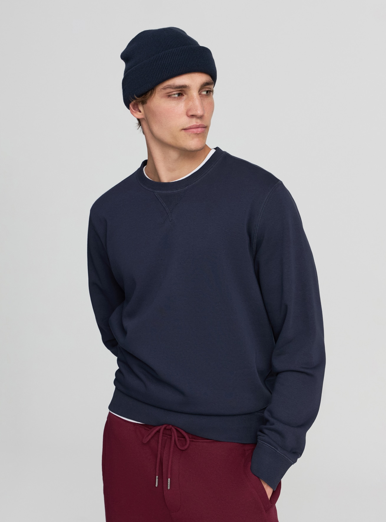 Sweat shirt basique uni sans capuche bleu navy | Terranova